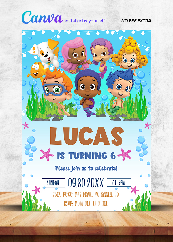 Bubble Guppies Birthday Invitation Canva Editable Instant Download