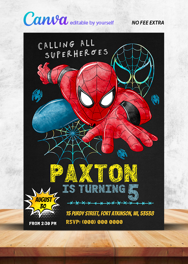 Spiderman Birthday Invitation Canva Editable Instant Download