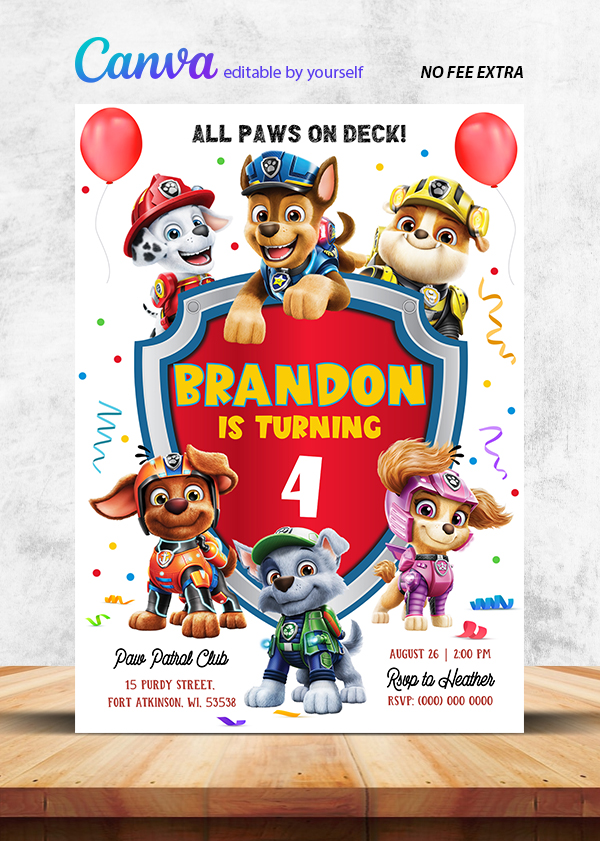 Paws Patrol Birthday Invitation Canva Editable Instant Download