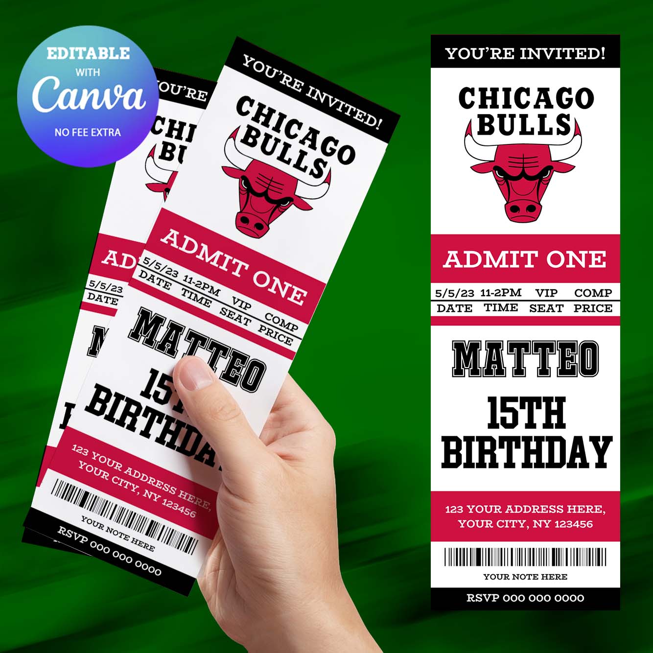 Chicago Bulls Birthday Ticket Invitation, Baseball Ticket Invitation Canva Editable and Printable