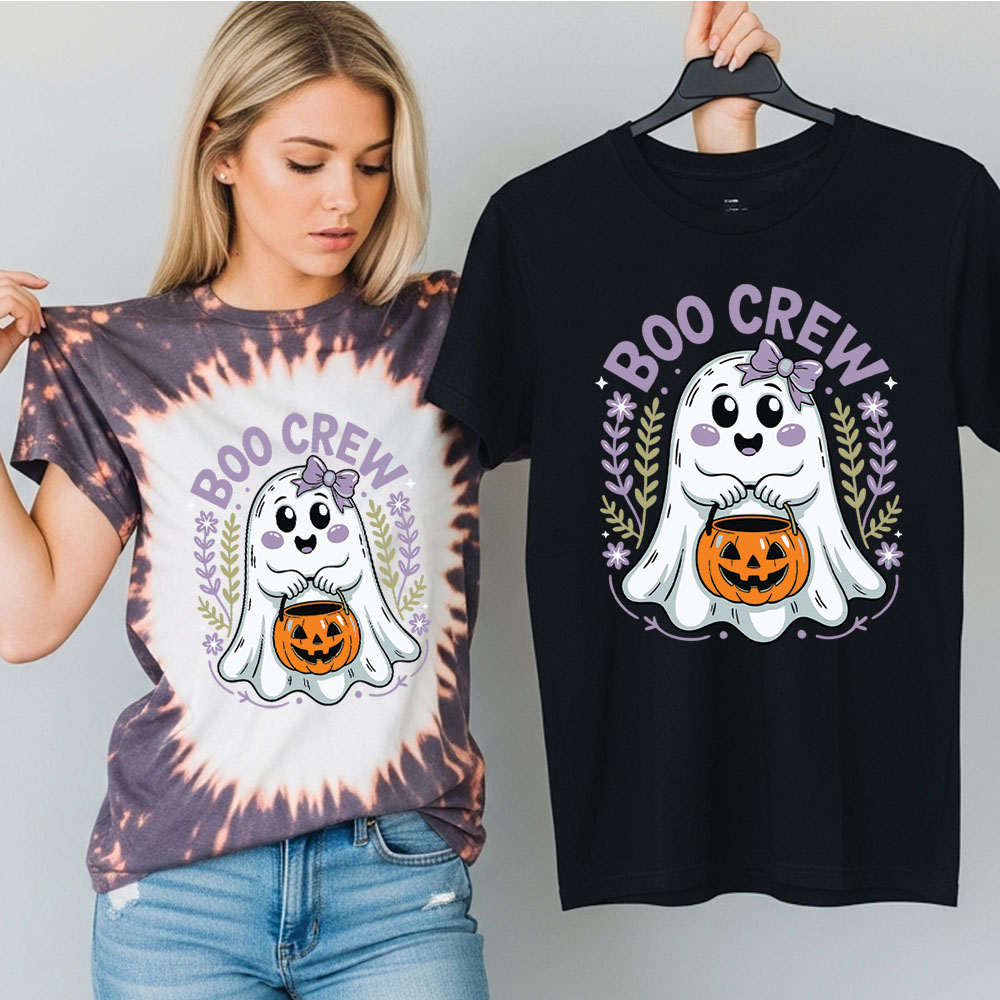 This “Boo Crew” Halloween PNG features an irresistibly cute ghost with rosy cheeks, a lavender bow, and a smiling pumpkin candy bucket. Surrounded by soft floral accents, this charming design blends spooky fun with a sweet, playful vibe—making it perfect for kids and adults alike. The high-resolution 300 DPI PNG with transparent background is ideal for sublimating on t-shirts, mugs, pillows, tote bags, tumblers, and other festive crafts. Whether you’re creating Halloween party gifts, cozy seasonal décor, or cute apparel, this design will add a touch of spooky sweetness to your projects.