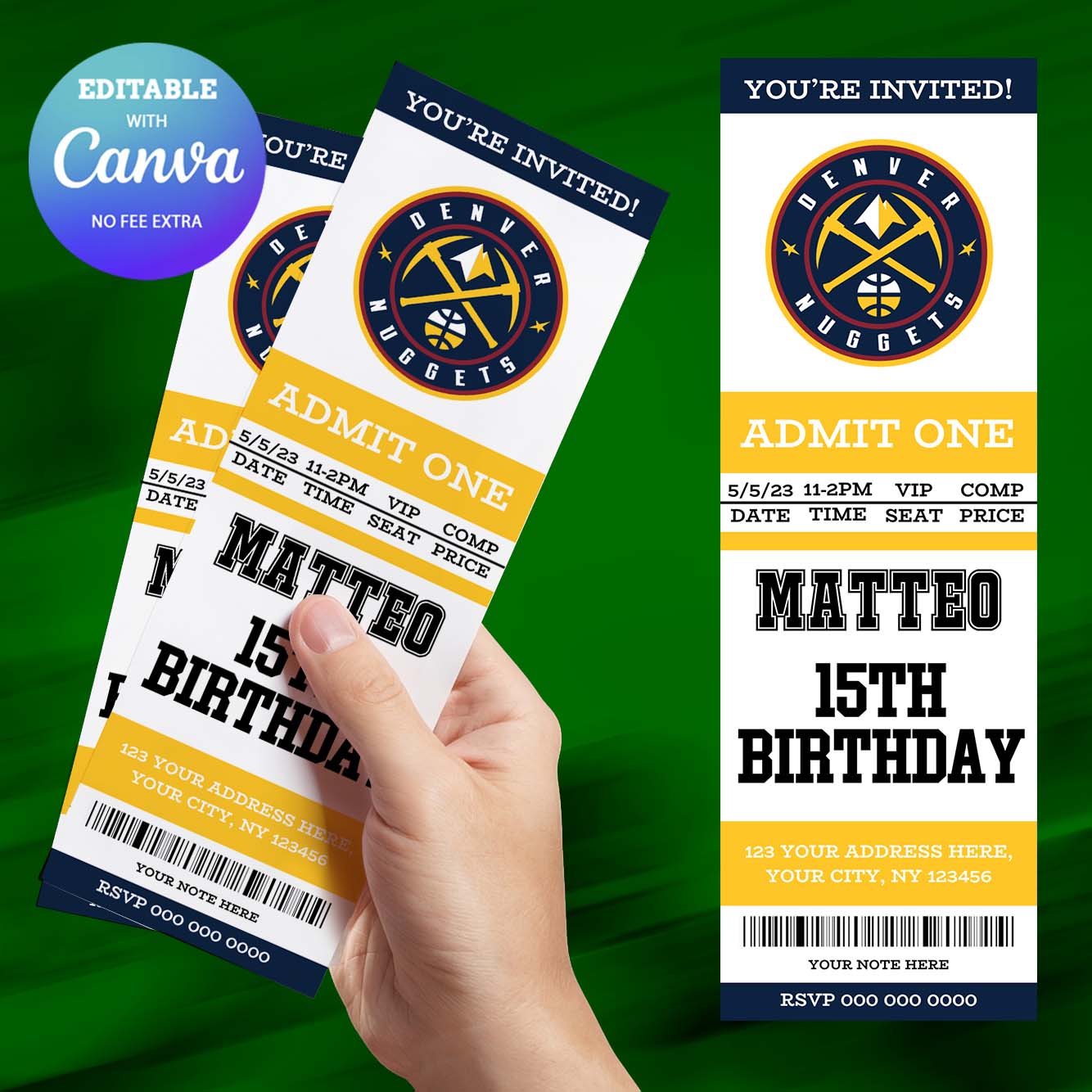 Denver Nuggets Birthday Ticket Invitation, Baseball Ticket Invitation Canva Editable and Printable