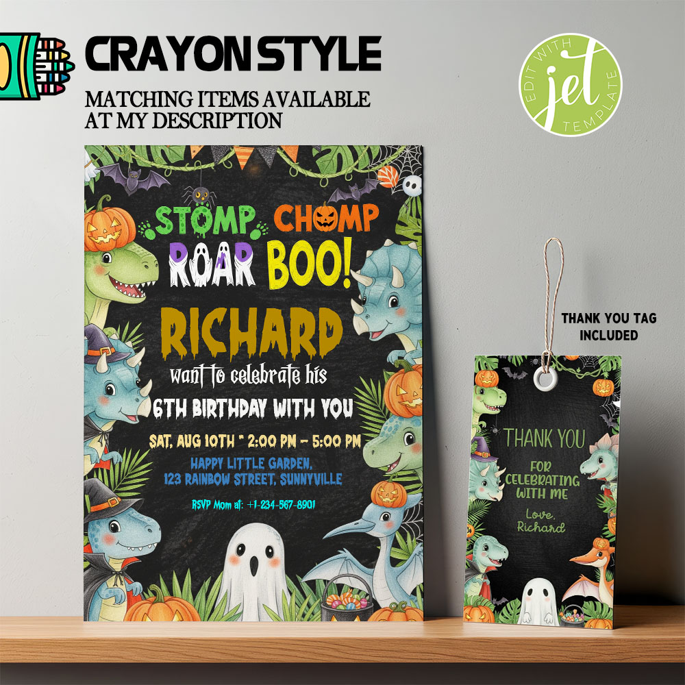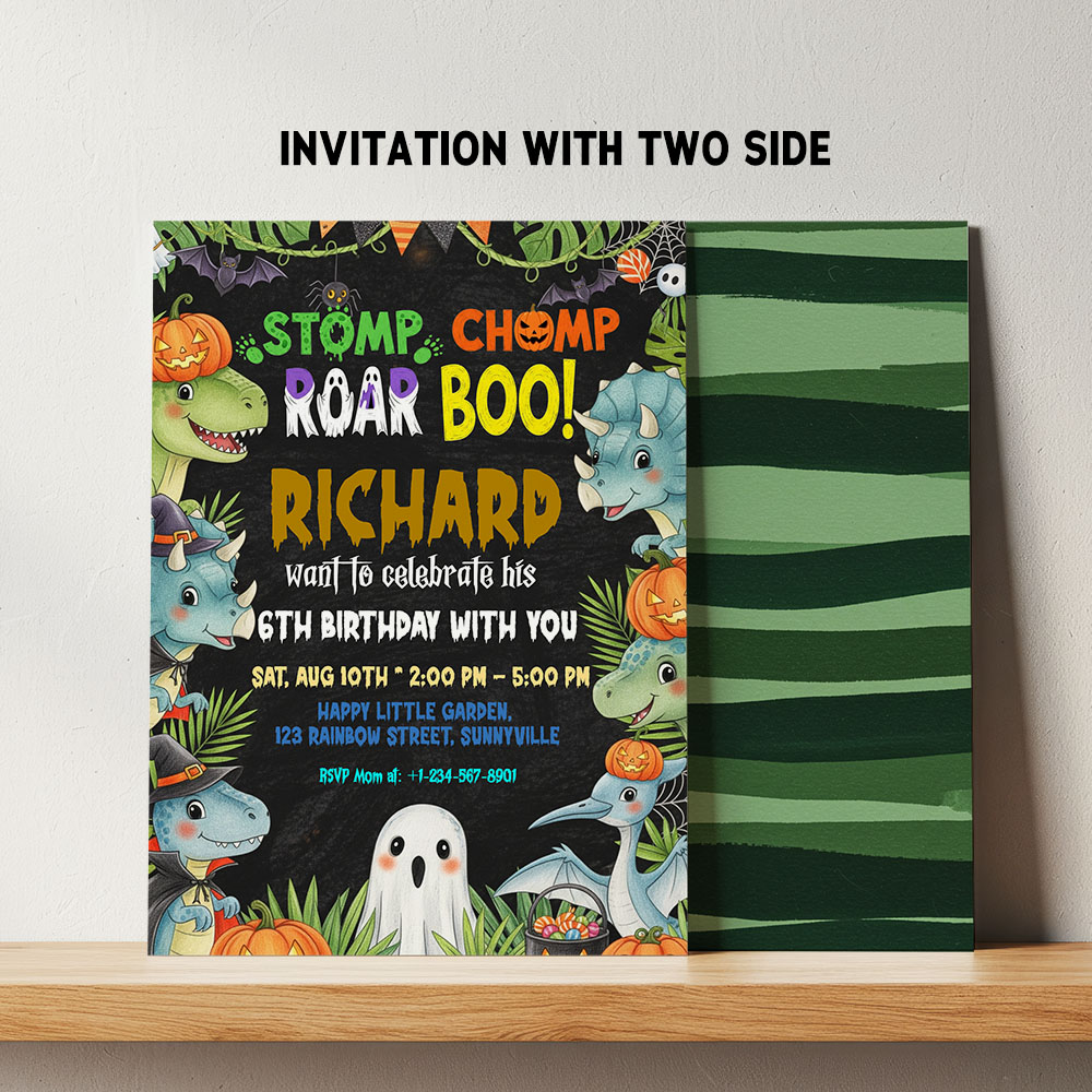 Turn your child’s special day into a roaring good time with this Spooktacular Dino Birthday Invite! 🦕👻