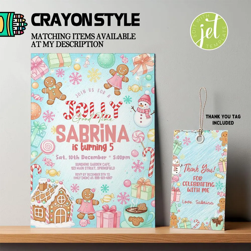 Sweet and Festive Christmas Candyland Birthday Invitation – A whimsical holiday-themed invitation perfect for celebrating your child’s special day during the Christmas season. With colorful candy canes, lollipops, gingerbread, and festive Christmas decorations, this editable invitation adds a magical Candyland touch to your party. Personalize easily with your child’s name, age, and party details. Ideal for Christmas birthdays, holiday gatherings, or a candy-themed birthday party.