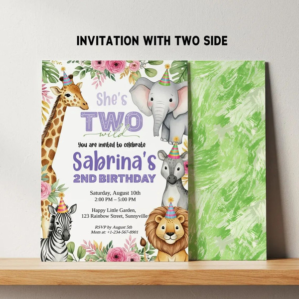 Celebrate your little explorer’s big day with this adorable Jungle Safari Birthday Invitation Template! Featuring playful monkeys, tropical leaves, and a cheerful giraffe, this editable invitation is perfect for a wild and fun 2nd birthday party.