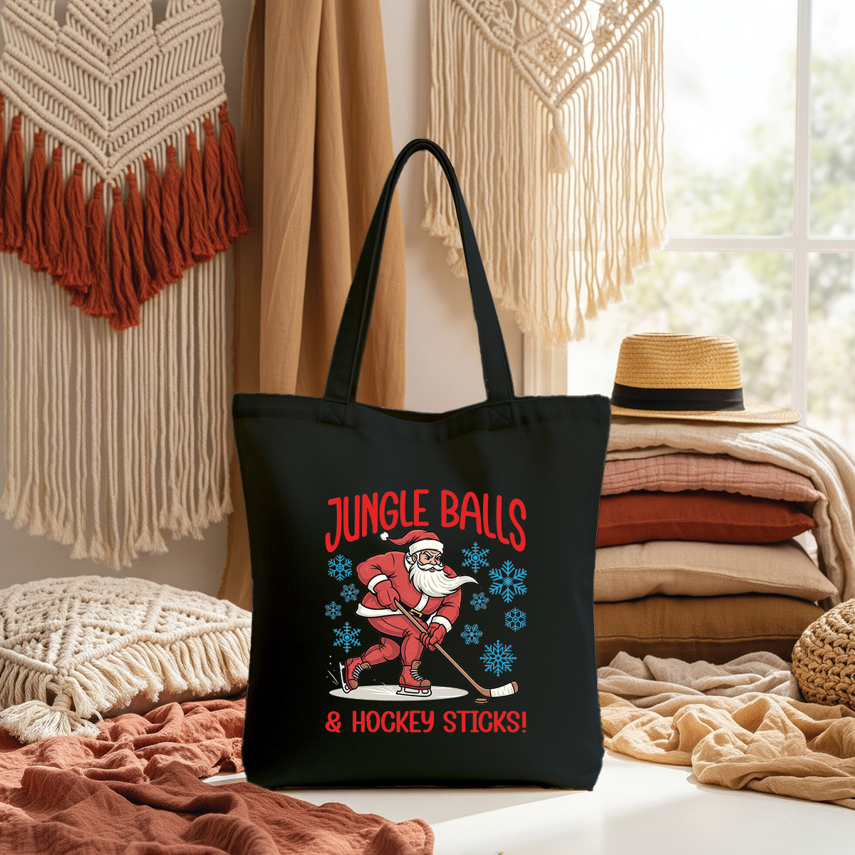 Funny Hocky Santa Claus with quote Jungle Balls and hockey sticks Sublimation PNG