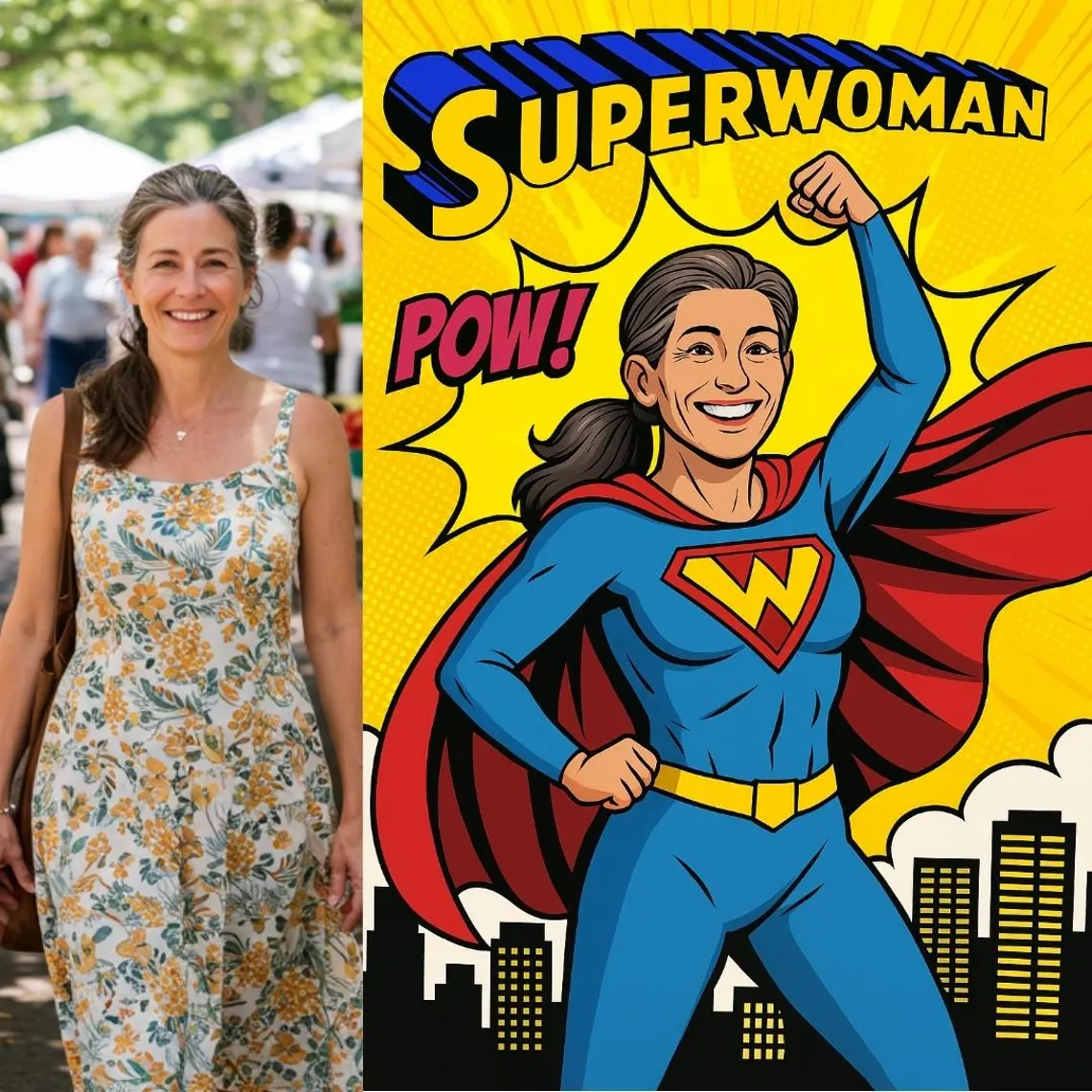 Unleash your inner hero with a personalized Superwoman Pop Art portrait! This unique artwork transforms your photo into a bold, vibrant retro comic-book style illustration, inspired by classic pop art aesthetics. With striking colors, halftone textures, and a vintage comic flair, this design makes you (or your loved one) look like the ultimate Superwoman.