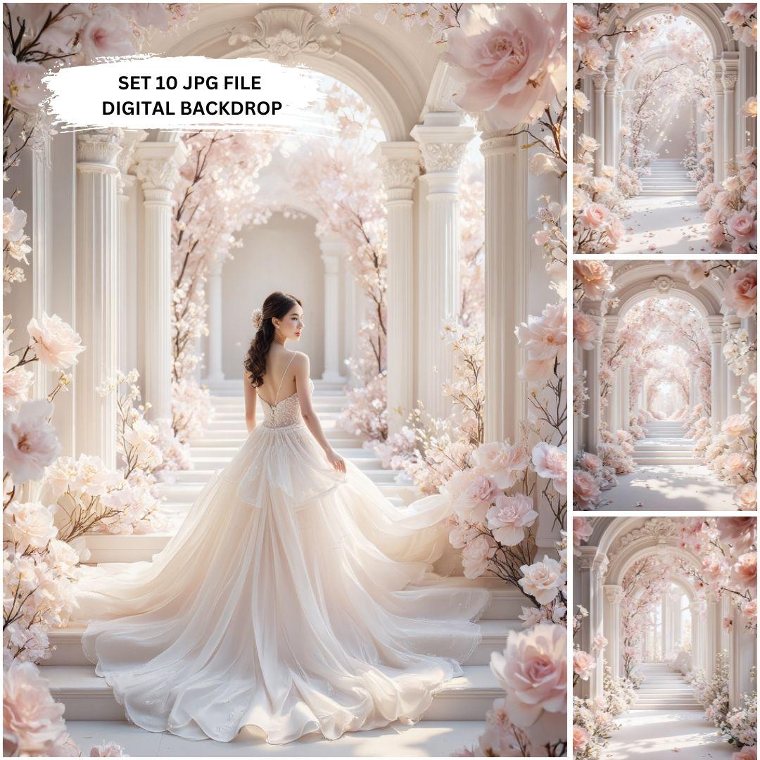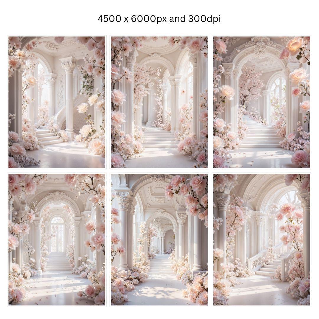 Set 10 Elegant Maternity digital Backdrop, Romantic Floral Arch, Dreamy Goddess Gown & Floral Backdrop, Enchanted Floral Castle Theme